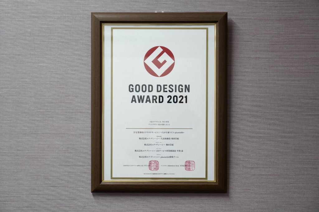その他に、「plantable」は、工務店とお客様の声から生まれた住宅業界に向けた業務システムになります。用途は住宅が完成するまでのタスク管理や、工務店が施主とやり取りするためのコミュニケーションツールとして、図面の共有や打ち合わせ内容の記録などを一元化できます。これにより、「言った・言わない」などの認識齟齬をなくし、施工後のコミュニケーションも円滑に行えるようになります。「plantable」は住宅業界向けのクラウドサービスとして、2021年にグッドデザイン賞を受賞しました。