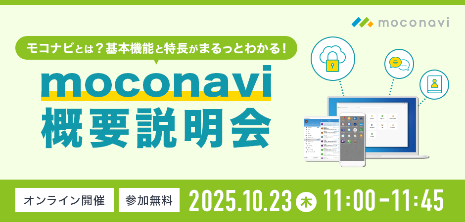 本ウェビナーでは、moconaviの基本機能や特長をわかりやすくご紹介。IT部門ご担当者様はもちろん、パートナー企業様のご参加も歓迎です。参加無料となりますので、「まずは概要だけ知りたい」という方もお気軽にご参加ください。