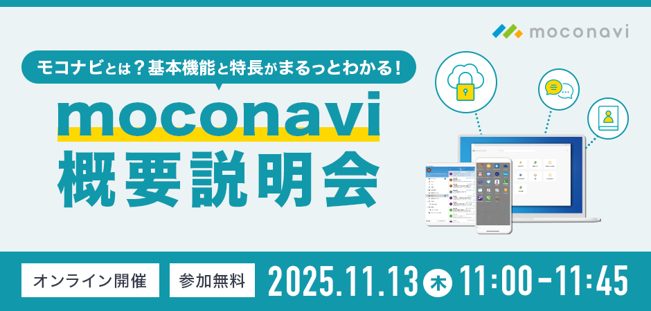 本ウェビナーでは、moconaviの基本機能や特長をわかりやすくご紹介。IT部門ご担当者様はもちろん、パートナー企業様のご参加も歓迎です。参加無料となりますので、「まずは概要だけ知りたい」という方もお気軽にご参加ください。